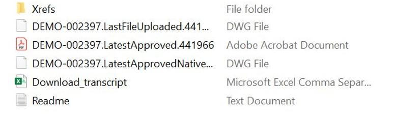 Xrefs (Folder): Contains the xref files of the artefact's DWG files (if any exist)