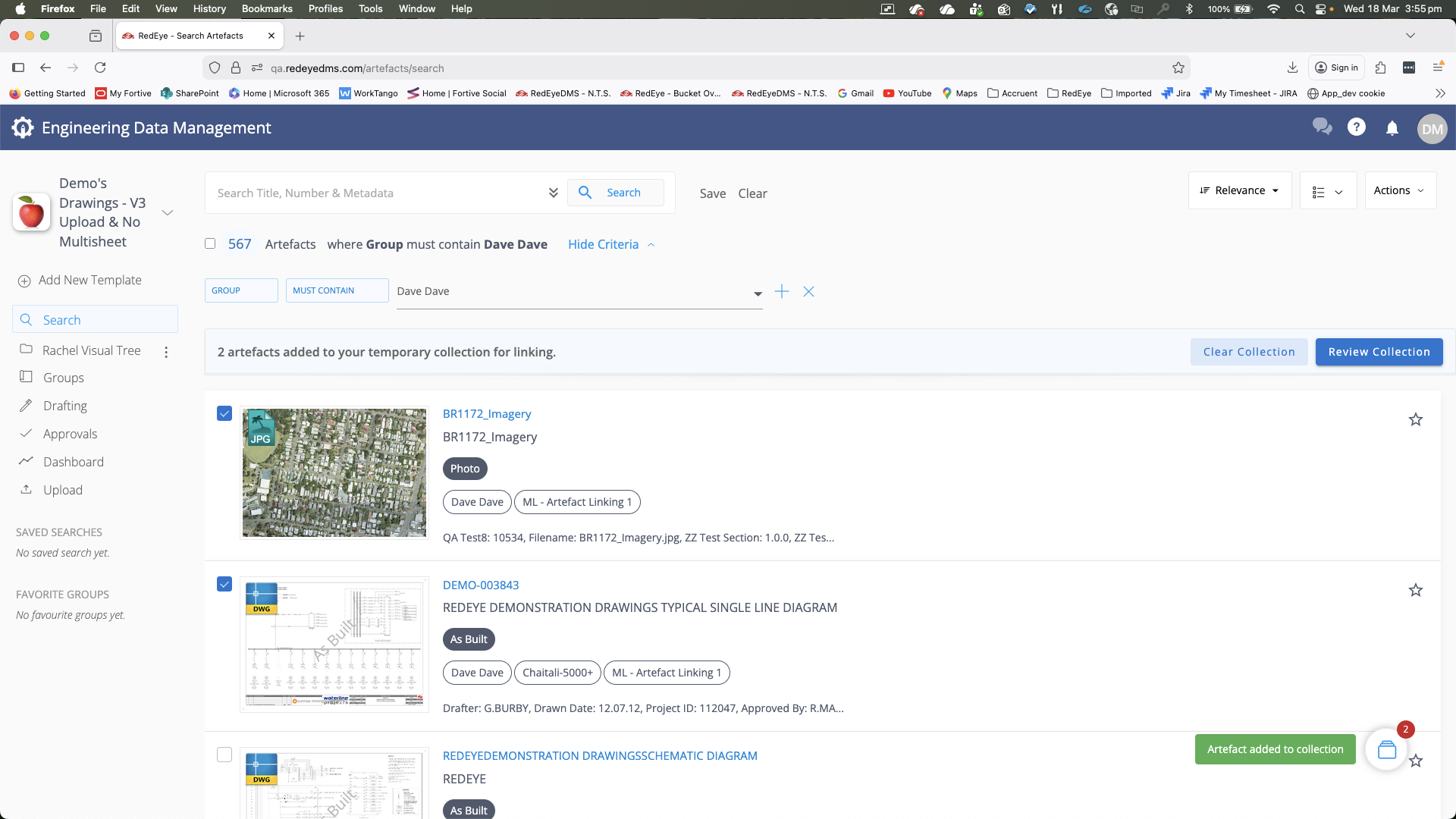 You can link artefacts to each other, enabling you to see the bigger picture and create relationships between associated data. For example, you may find it convenient to link an arrangement drawing with its sub-assemblies, or upload and link a photograph to a drawing.