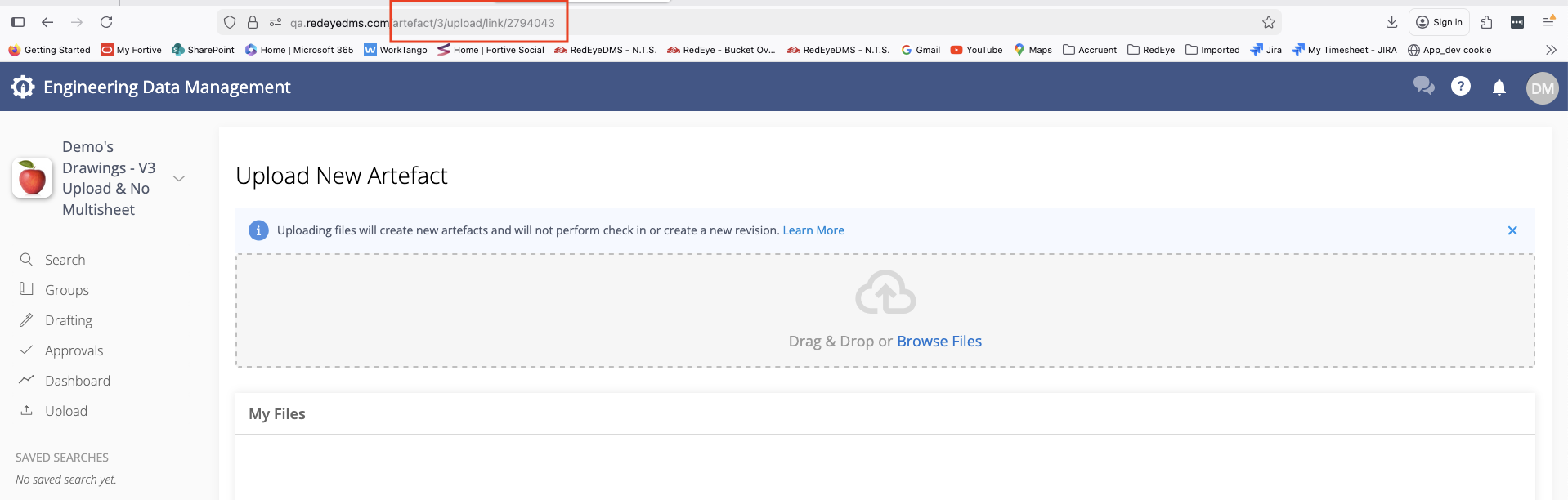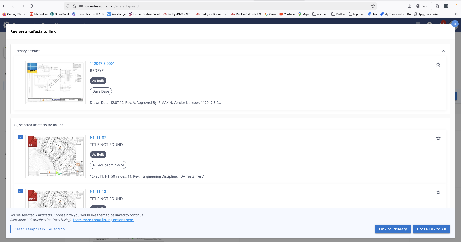 The Upload and link feature uses the Link to primary (one-to-many) method only. Upload permissions apply because this feature uses the Upload tool. If cross-link is required, upload the artefacts first using the standard Upload tool, then perform a separate cross-link action.