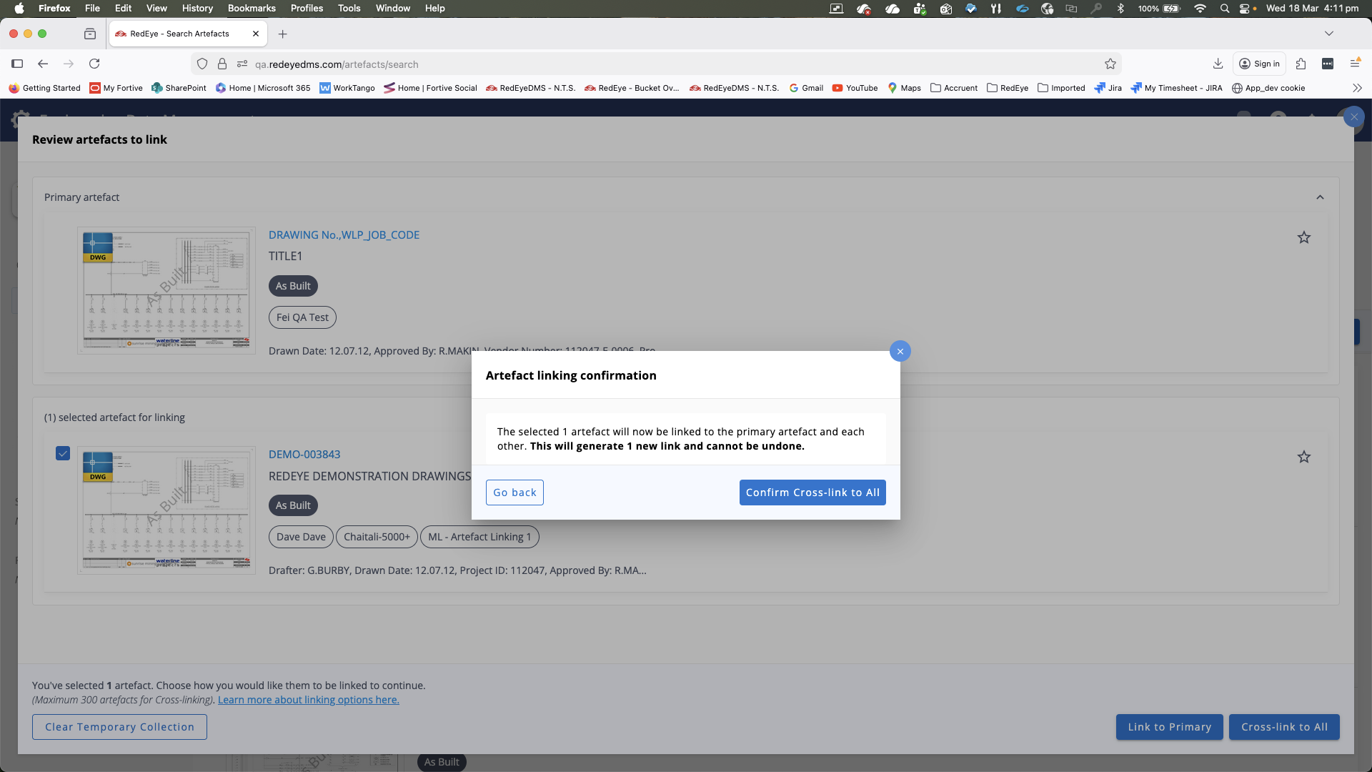 Cross-link to All: Creates a fully interconnected relationship. All selected artefacts are linked to the primary artefact and to each other.
